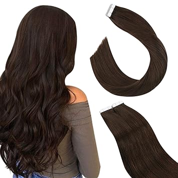 Tape Extensions Echthaar Haarverlangerung 50cm Tape In Haare Mit Klebeband 40 Tressen X 4 Cm Breit Und 2 5g Gewicht Pro Tresse Farbe 4 Schokobraun Amazon De Beauty